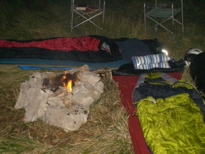 een nacht slapen op een veld met een soort podiumpje, kwamen tijdens